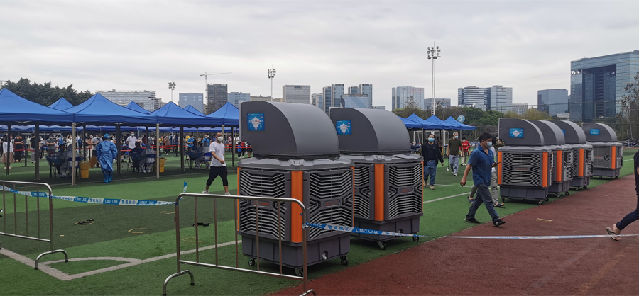 移動(dòng)式冷風(fēng)機(jī)為醫(yī)護(hù)人員及群眾提供降溫保障