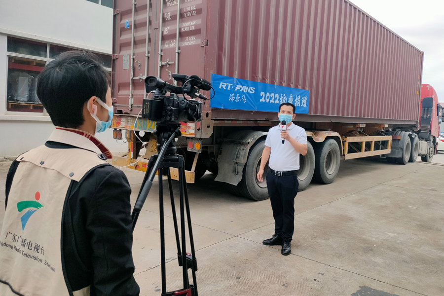 4月1日上午,廣東瑞泰通風(fēng)降溫設(shè)備有限公司在東莞生產(chǎn)基地舉行了“2022抗疫護(hù)航行動(dòng)”首發(fā)儀式,向香港地區(qū)捐贈(zèng)了一個(gè)貨柜的移動(dòng)式冷風(fēng)機(jī)。廣東瑞泰鄭才翥董事長(zhǎng)及主要成員等出席了相關(guān)活動(dòng),廣東電視臺(tái),新浪網(wǎng),鳳凰網(wǎng)等多家媒體單位進(jìn)行了現(xiàn)場(chǎng)報(bào)道。